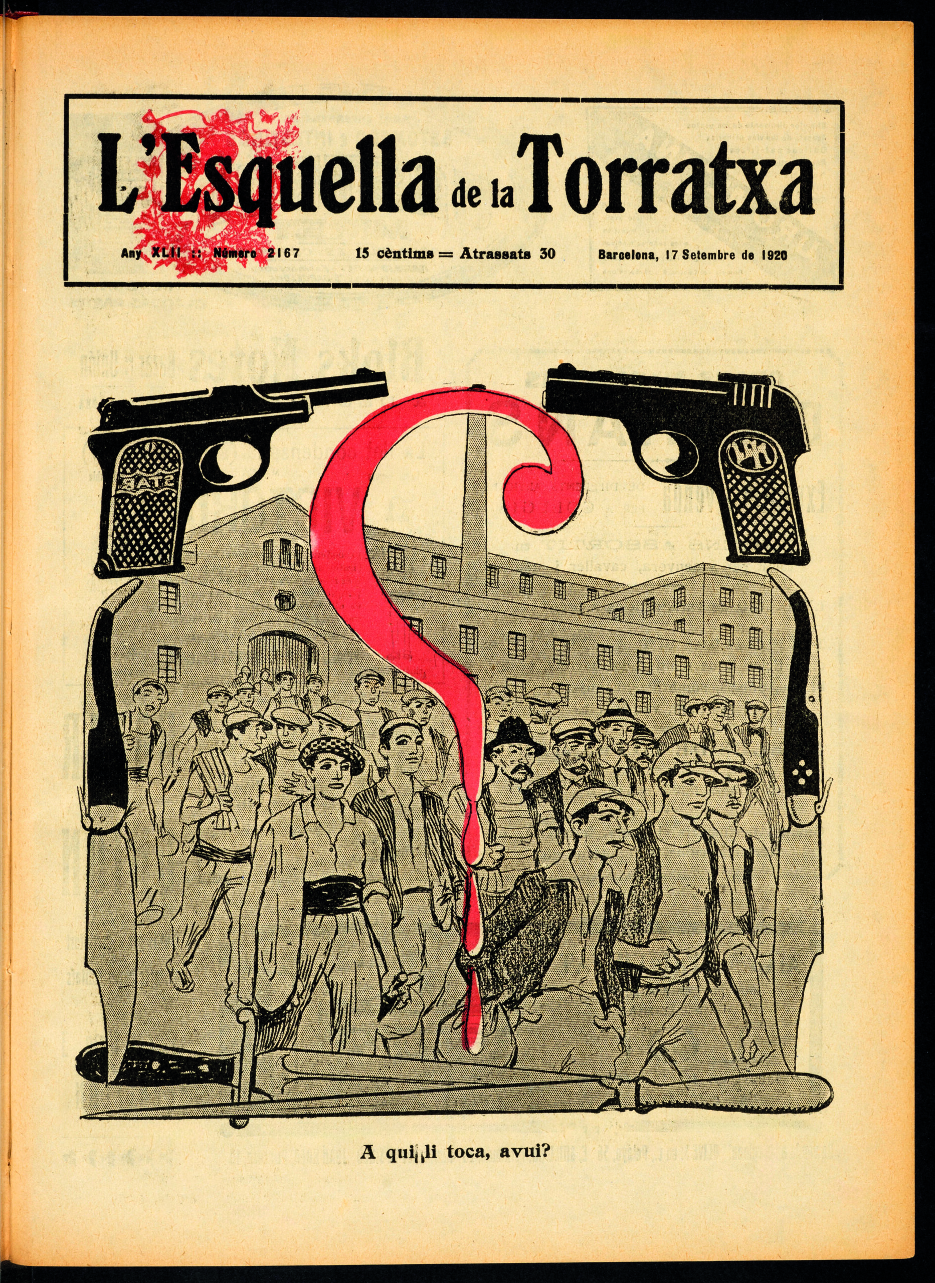 Aquest ressentiment va anar cuinant-se a foc lent fins que, el 1917, la situació va esclatar. Entre maig i juliol d’aquell any, els assassinats del tintorer Frederic Roigé, el del sindicalista Josep Climent i el de l’industrial Joan Tàpies van convertir Barcelona en escenari bèl·lic urbà que duraroia fins el 1923, “quan Miguel Primo de Rivera va donar el cop d’estat”.