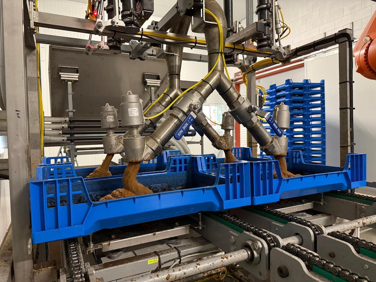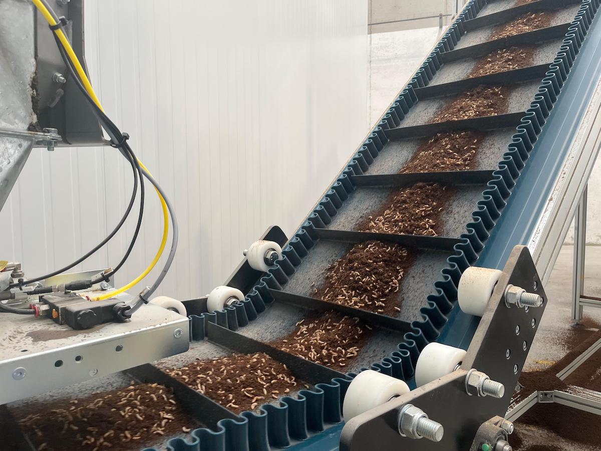 En entrar a la fàbrica, el primer que crida l’atenció és que no es tracta d’una planta controlada per humans, sinó per la tecnologia. En ella, els operaris no en són els protagonistes, sinó els supervisors d’aquest complex procés en què les larves i els residus es converteixen en aliments per a animals i fertilitzants per al camp. Brasos robòtics, cintes transportadores i maquinària especialitzada treballen a un ritme frenètic, en un procés coordinat amb precisió mil·limètrica, com si es tractés d’un ball d’execució difícil, en què cada pas, per petit que sigui, compta.
