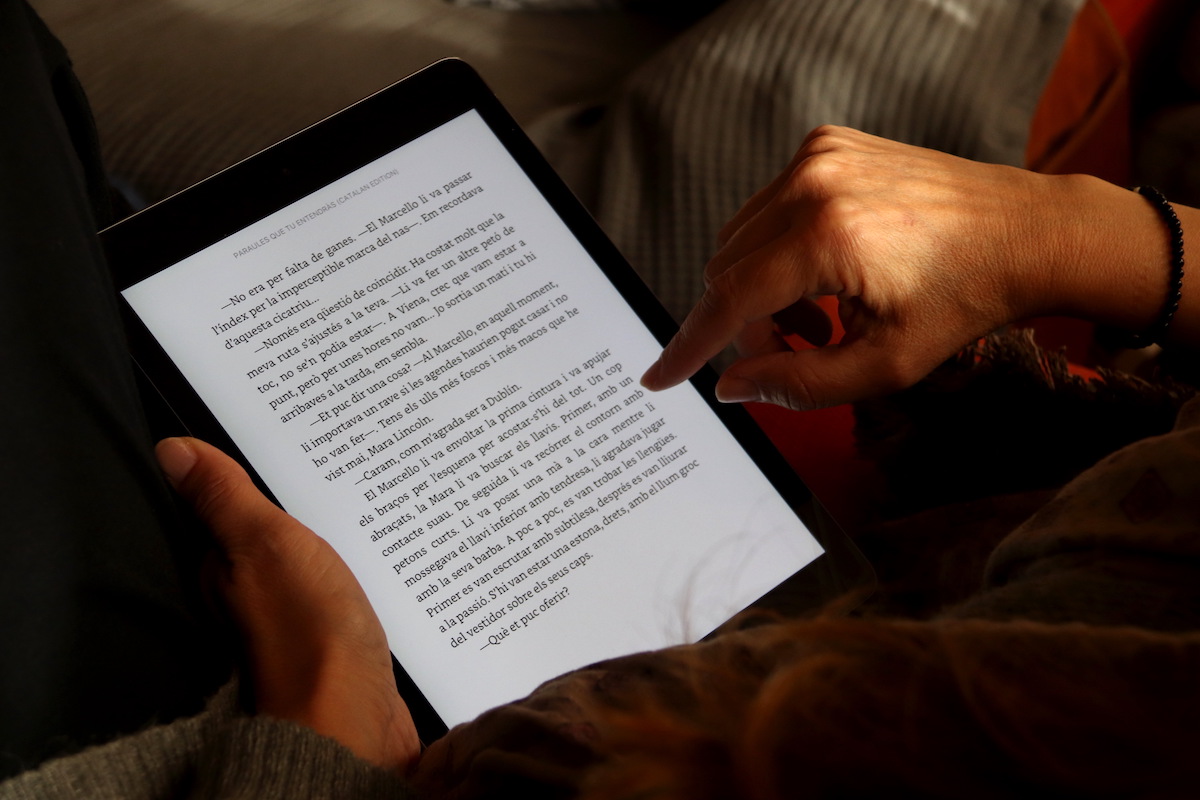 Primer pla d'un llibre digital. © Mar Vila / ACN