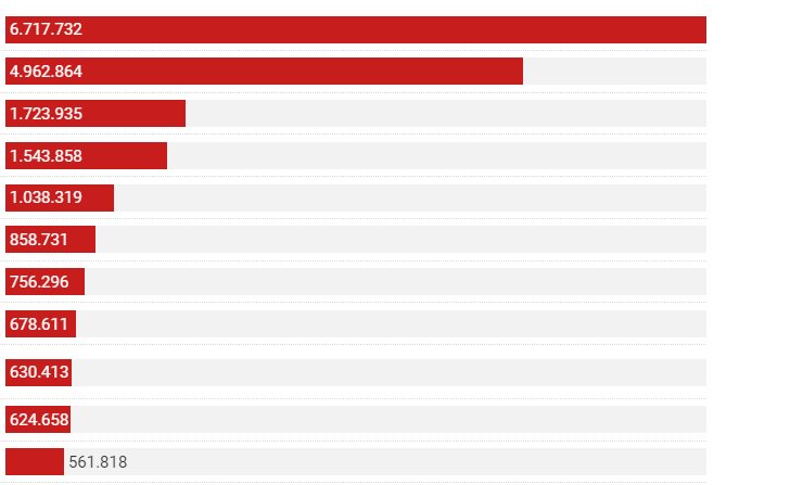 La quarta posició va correspondre a Sevilla (1,54 M), mentre que Bilbao (1,03 milions) va ser la cinquena.