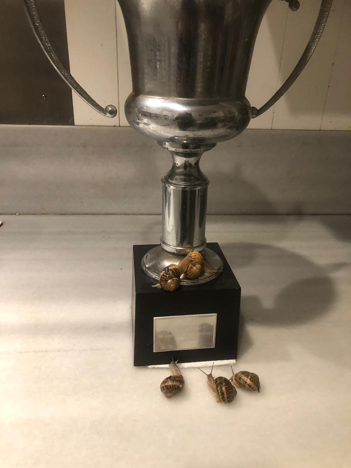 També els va acostumar a donar-los una mica de pols d’aspirina amb el dit com a premi després dels entrenaments. Sona a ficció, a argument de pel·lícula de dibuixos animats. Però la qüestió és que a casa seva el Joan conserva el trofeu que prova la seva destresa com a entrenador de caragols. Els seus cinc caragols olímpics van guanyar carreres. Això sí, la granja de caragols de cria no van representar els guanys esperats i el projecte no va tenir continuïtat. “De caviar, només en vaig aconseguir fer un potet de cent grams que, ja en aquell moment, tenia un preu de tres mil pessetes”, explica l’artífex d’aquesta aventura viscuda que mai li fa nosa explicar i que sempre, segur, desperta sorpresa.