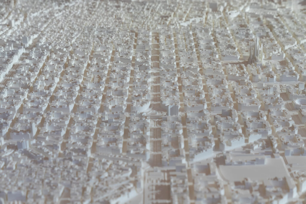 Maqueta de Barcelona del Pla de Barcelona 2026–2035, instal·lada a l’antigua seu de l’editorial Gustavo Gili