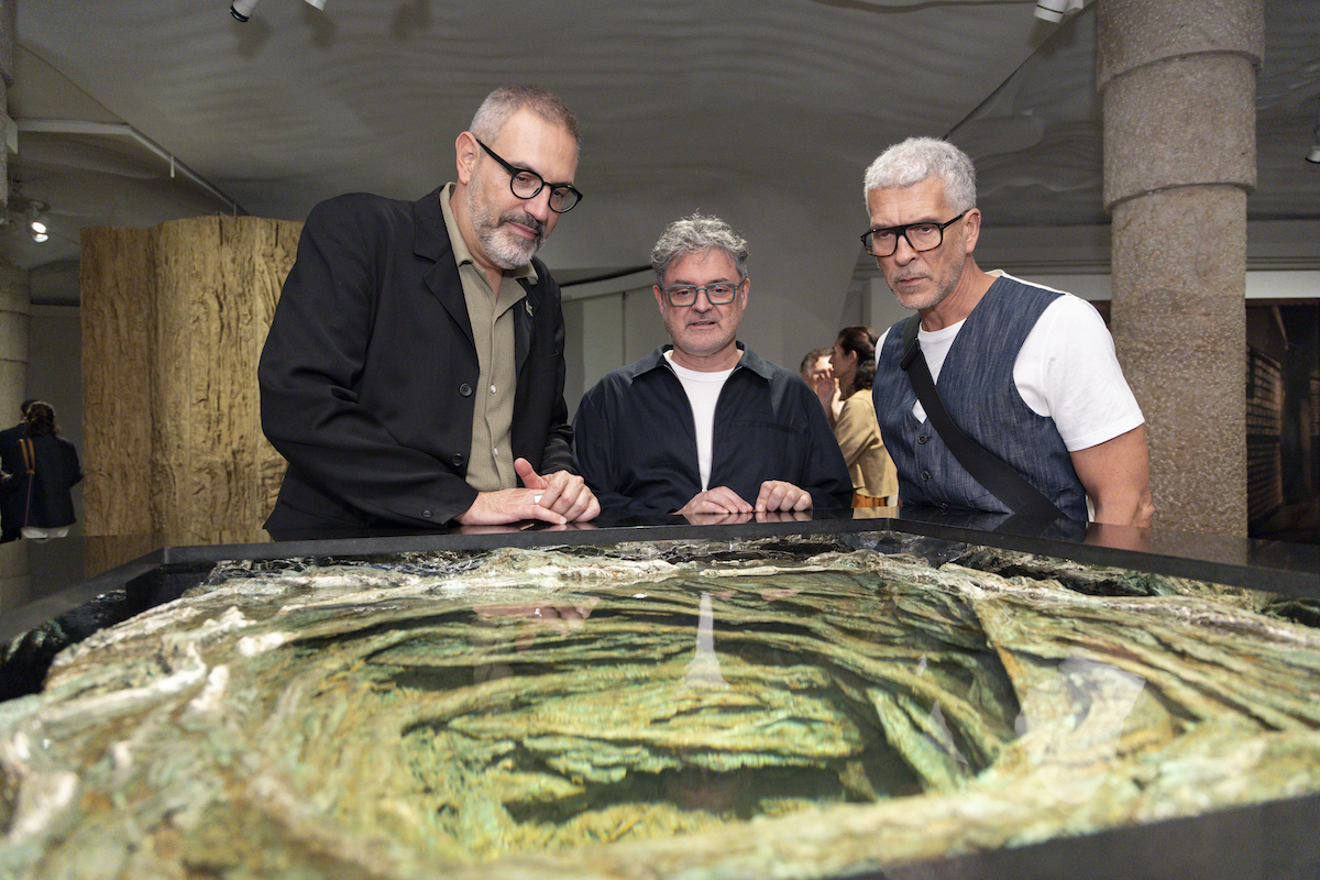 L’exposició culmina al pati, on una escultura octogonal de pedra negra (gairebé kubrikiana) conté un centre d’aigua verda i ondulant. És com si la Pedrera hagués obert el seu cor i hi brollés un pou d’energia subterrània. Aquesta obra resumeix tot l’univers d’Iglesias: l’aigua com a memòria, la pedra com a paraula, la matèria com a llenguatge. En ella, el temps sembla retrocedir. Tot esdevé primigeni i, alhora, estranyament futurista.