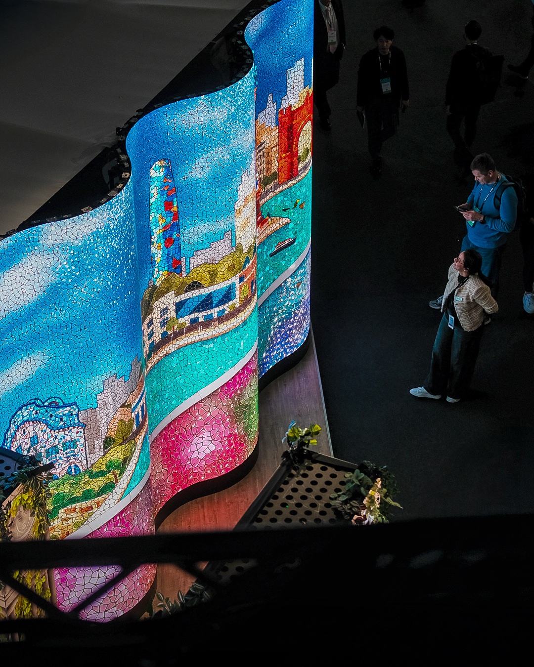 A l’ISE, aquesta dimensió cultural es fa tangible als estands dels més de 1.700 expositors, molts dels quals converteixen l’espai expositiu en una obra en si mateixa: discoteques immersives, murs on pintar grafitis digitals o recorreguts sensorials, que fan que els estands deixin de ser simples aparadors de producte per a convertir-se en autèntiques vivències. Fins i tot el simple fet de caminar per la fira pot esdevenir una experiència artística, com passa amb Breathe —l’exposició immersiva creada per l’estudi barceloní instronic—, la instal·lació que connecta el vuitè pavelló de Fira de Barcelona i convida a aturar-se, respirar i reconnectar abans de reprendre el ritme intens de les reunions de negoci.