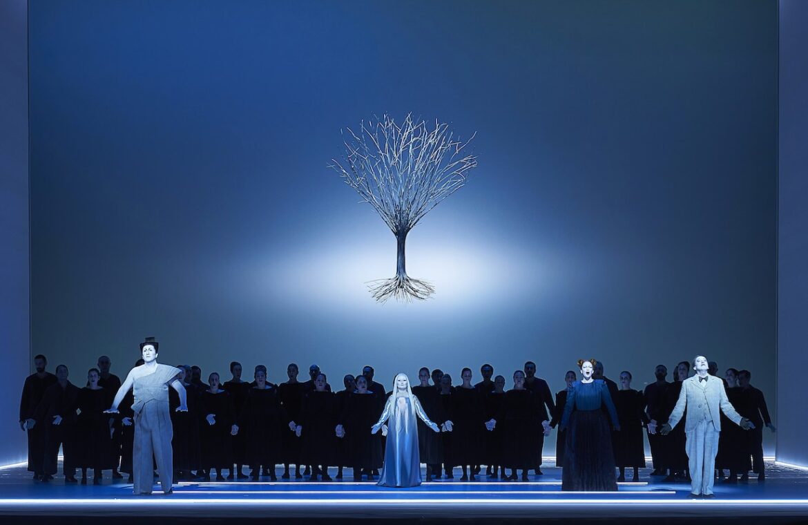 La posada en escena de Robert Wilson, que es va poder veure per primera vegada a la Mozartwoche de Salzburg el 2020, desafia amb les seves imatges hiperestètiques i pregnants —eventualment incòmodes— la línia oficial, transformada mitjançant una iconografia en tensió dialèctica amb el missatge cristià. Podem sentir passatges alineats amb el nucli dur de la proposta de salvació, cites o paràfrasis bíbliques -algunes inspirades per les cartes de Pau- que parlen del poder de la flaquesa, d’una salut que brolla de la ferida, o de com el pes del pecat s’alleugereix amb la llei divina; però les accions que es desenvolupen a l’escenari no il·lustren el que és cantat, i si ho fan és a contrapel, convidant vivament a adoptar certa perspectiva. Imatges d’un poder inqüestionable, que oscil·len frenèticament -com una brúixola desmagnetitzada- entre allò sublim i allò kitsch, sense que es pugui determinar de quin costat s’està. Aquesta impossibilitat pot resultar molesta, ja que desdibuixa la claredat i distinció de la línia que separa fe i raó; veritable cinta de Moebius en què la necessitat de creure —per transcendir o perpetuar-se dignament— retroalimenta la no menys humana necessitat de crear, de trobar consol en l’art o en l’apreciació de la bellesa, com a possible camí per a la salut anímica.