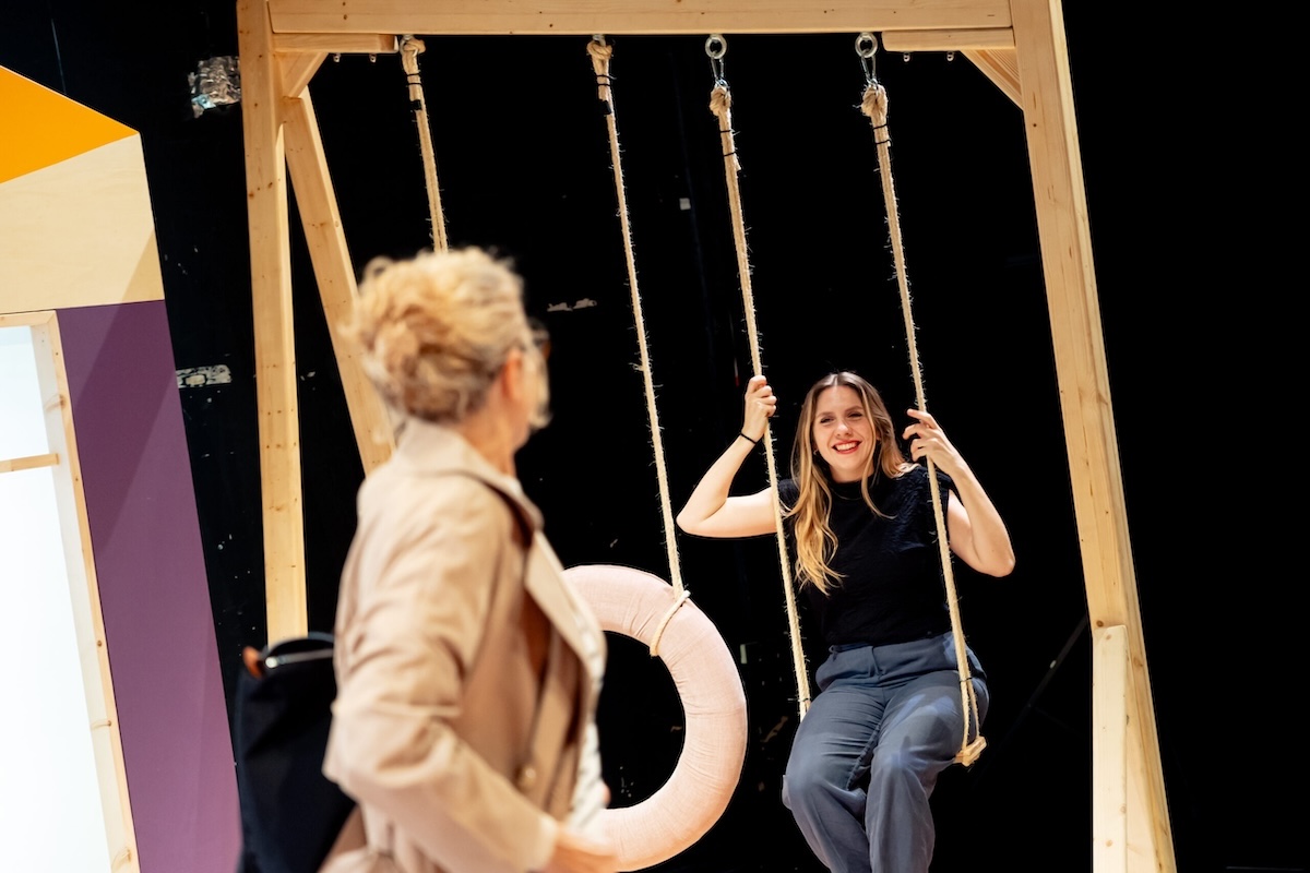 Tota l’obra, desenvolupada en una escenografia d’escola pública moderna, oberta, pacífica i tolerant, ens pregunta si no hem dut les coses una mica massa enllà. © Sergi Panizo