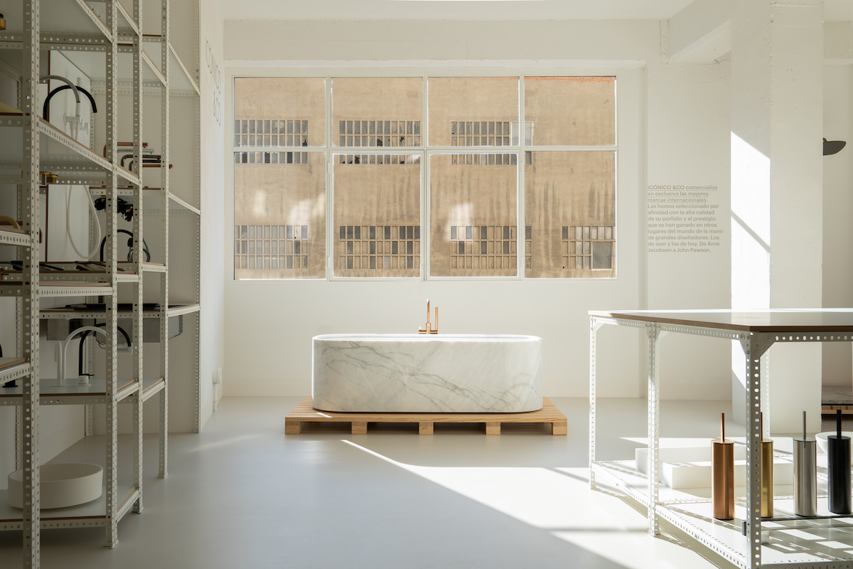 Així és com es van decidir a fer el salt a un espai físic de més de 400 metres quadrats en el cor del Poblenou (Pallars, 85). Amb una inversió de prop d’un milió d’euros, l’espai integra els dos conceptes de l’empresa familiar. D’una banda, ICÓNICO, amb la seva col·lecció pròpia exposada: aixetes, lavabos, dutxes, banyeres o ferratges —que representa pràcticament la totalitat del negoci de l’empresa—. I, d’una altra, ÚNICO: un espai d’exposició d’objectes artesans, des de flors modernistes fins a ceràmiques decoratives.